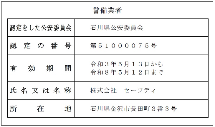 | 会社名 | 株式会社セーフティ | ||||||||